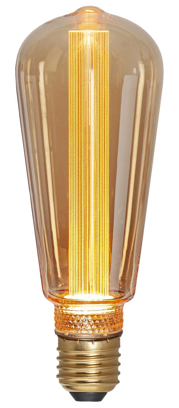 LED-Lampe mit bernsteinfarbenem Glas. Verleiht einen gemütlichen und warmen Glanz.